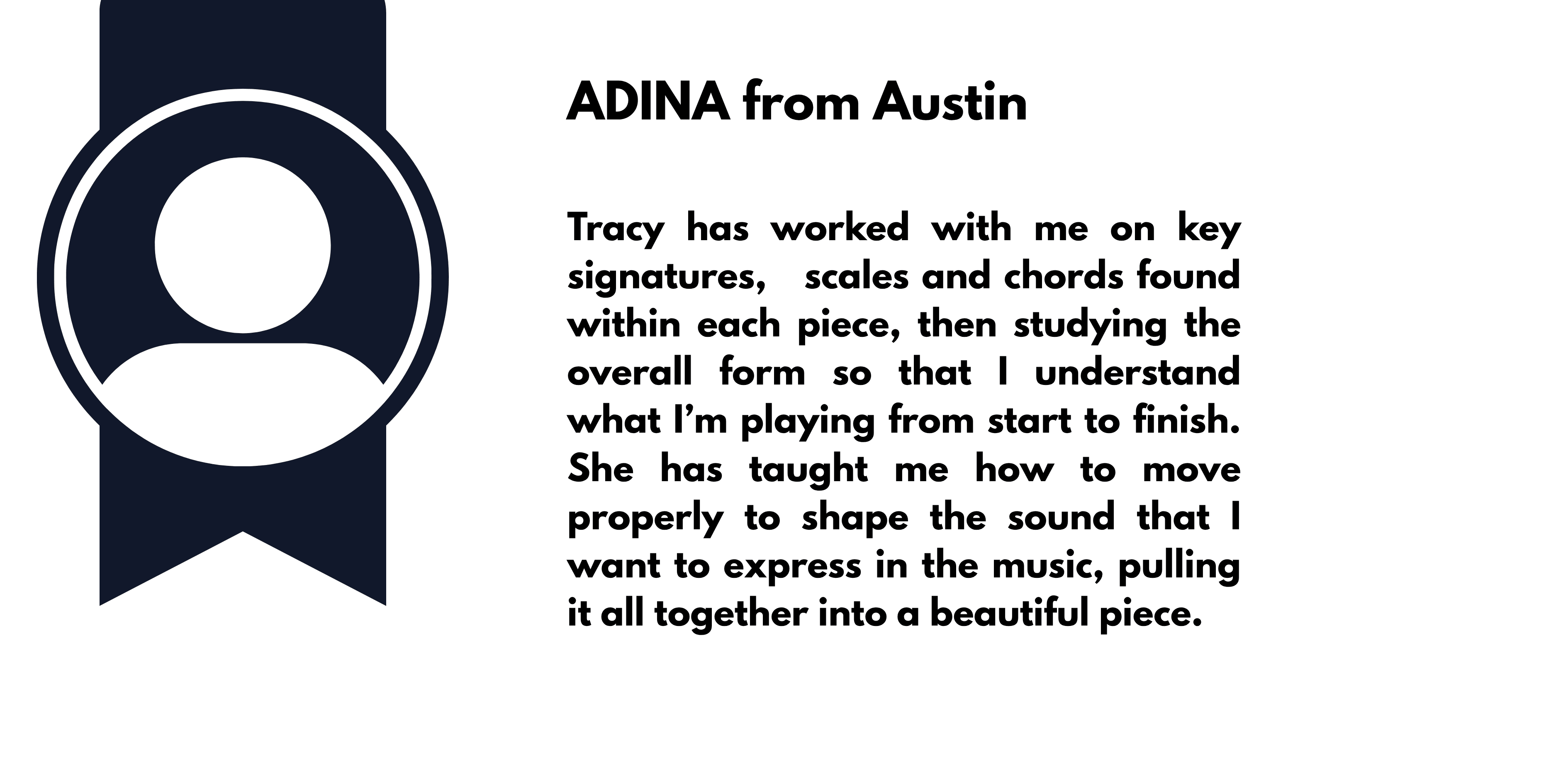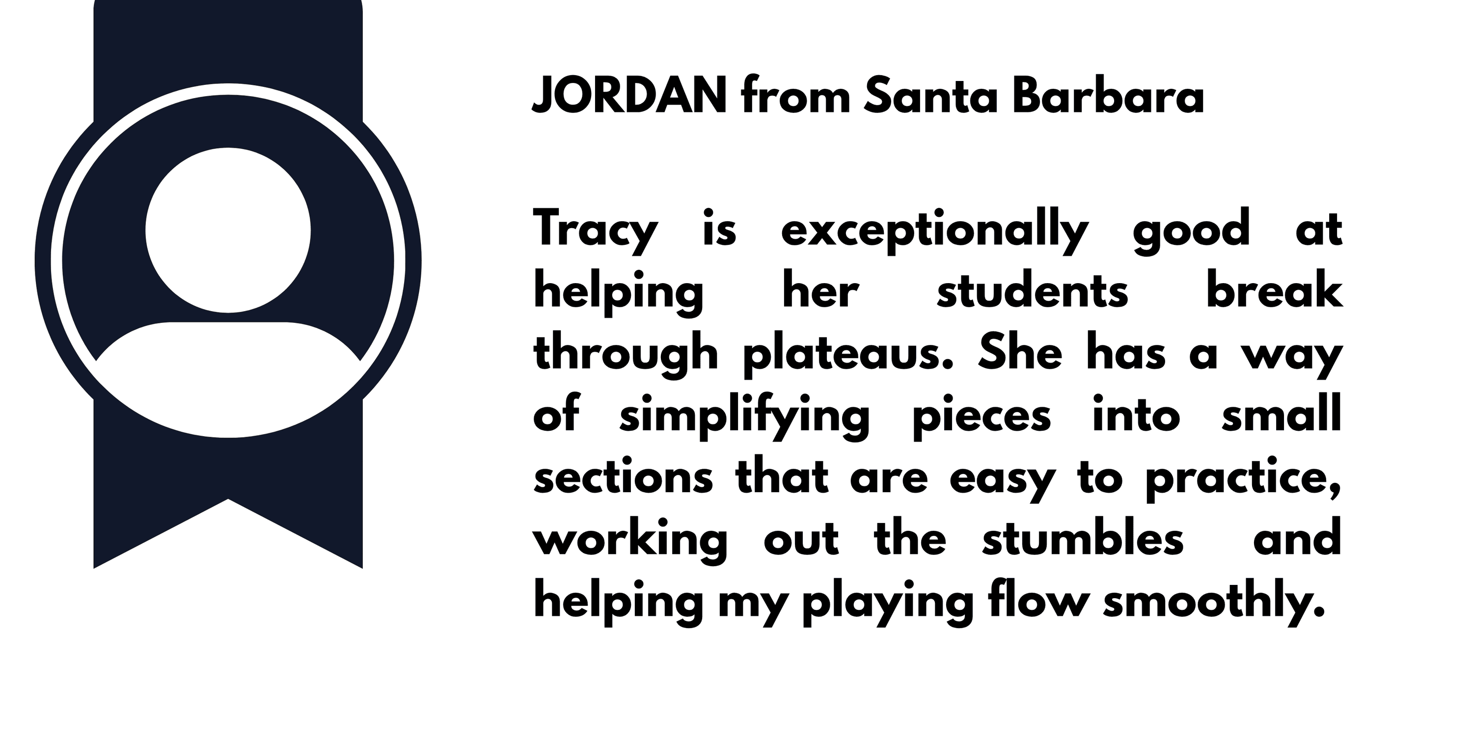 "Tracy has built my confidence. She's given me rhythm exercises so that I can pull the pieces together."